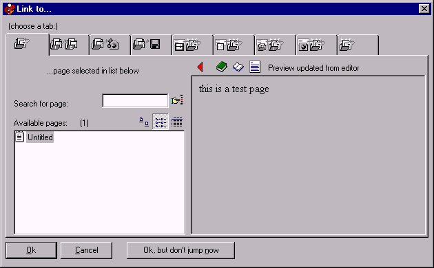 With this button you can link to pages inside and outside of the current site / hypertext / catalog, and also to files. HyperPublish allows also “